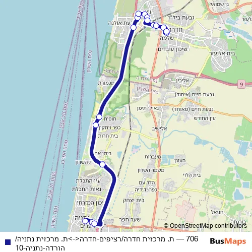 קווים 706 ת. מרכזית חדרה/רציפים-חדרה<->ת. מרכזית נתניה/הורדה-נתניה-10 Bus