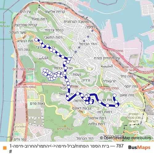 Bus 787 - בית הספר הפתוח/ברל-חיפה<->התמר/החרוב-חיפה-1# in Haifa: Stops & Timetable