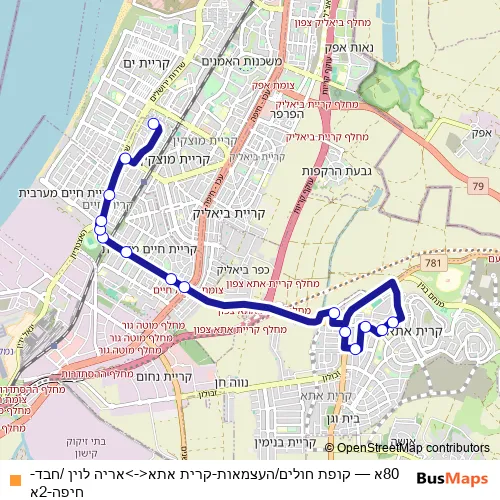 Click here to view the nearest 80א - קופת חולים/העצמאות-קרית אתא<->אריה לוין /חבד-חיפה-2א bus stop.
