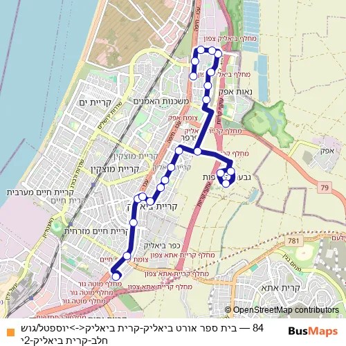 Bus 84 - בית ספר אורט ביאליק-קרית ביאליק<->יוספטל/גוש חלב-קרית ביאליק-2י: Full Schedule in Haifa