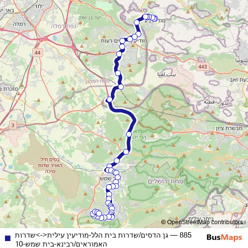 Bus 885 - גן הדסים/שדרות בית הלל-מודיעין עילית<->שדרות האמוראים/רבינא-בית שמש-10: Full Schedule in Modiin Ilit