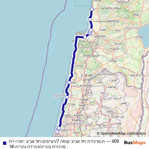 Click here to view the nearest 909 - ת.מרכזית תל אביב קומה 7/רציפים-תל אביב יפו<->ת. מרכזית נהריה/הורדה-נהריה-1# bus stop.