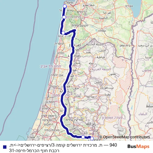Bus 940 - ת. מרכזית ירושלים קומה 3/רציפים-ירושלים<->ת. רכבת חוף הכרמל-חיפה-31: Full Schedule in Haifa