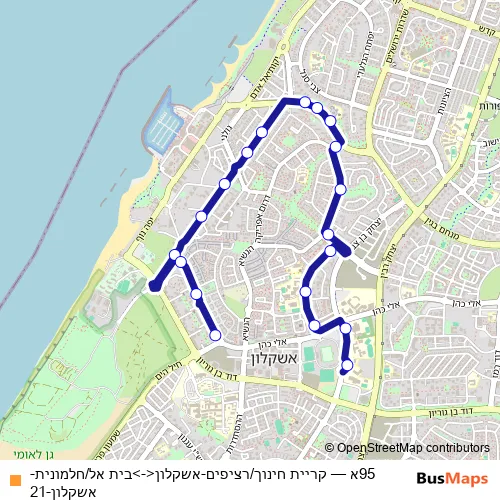 Bus 95א - קריית חינוך/רציפים-אשקלון<->בית אל/חלמונית-אשקלון-21 Schedule in Ashkelon