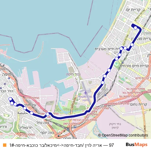 Bus 97 - אריה לוין /חבד-חיפה<->מיכאל/בר כוכבא-חיפה-1# in Haifa: Stops & Timetable