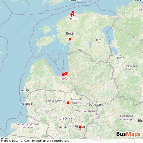 AS Lux Express Estonia operates in the following cities: Riga.