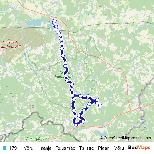 Bus 179 - Võru - Haanja - Ruusmäe - Tsiistre - Plaani - Võru in Voru: Stops & Timetable