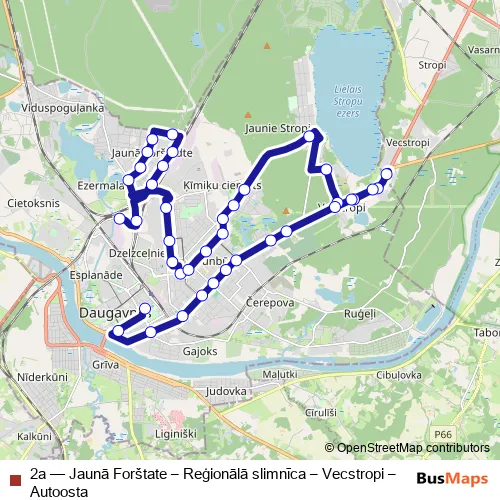 Bus 2a - Jaunā Forštate – Reģionālā slimnīca – Vecstropi – Autoosta in Daugavpils: Stops & Timetable