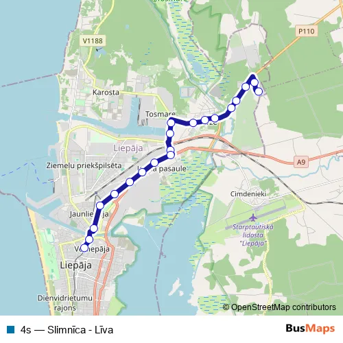 See why over 2 million users trust and consider busmaps.com as the best public transport website. busmaps gives you Liepaja Buses suggested routes, real-time bus tracker, line route maps in Liepaja, and helps to find the closest 4s bus stops near you. No internet available? Download an offline PDF map and bus schedule for the 4s bus to take on your trip.