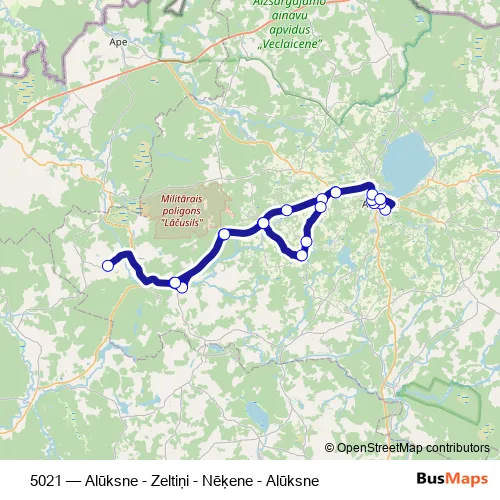 Bus 5021 - Alūksne - Zeltiņi - Nēķene - Alūksne in Aluksne: Stops & Timetable