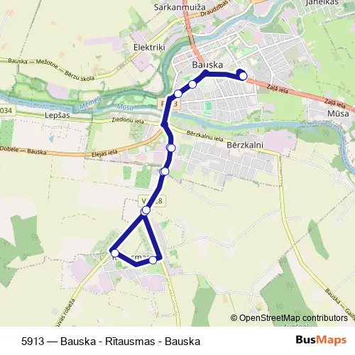 Click here to view the nearest 5913 - Bauska - Rītausmas - Bauska bus stop.