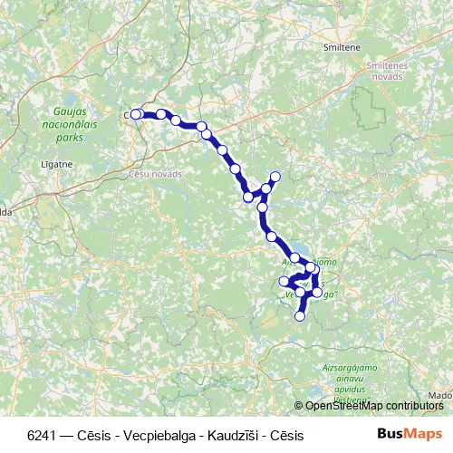 Bus 6241 - Cēsis - Vecpiebalga - Kaudzīši - Cēsis: Full Schedule in Vecpiebalga