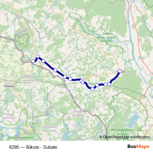 The first stop of the 6295 bus route is Subate and the last stop is Ilūkstes Ao. 6295 (Ilūkste - Subate) is operational during ежедневно.
