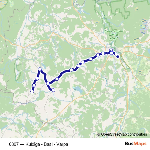 Click here to view the nearest 6307 - Kuldīga - Basi - Vārpa bus stop.