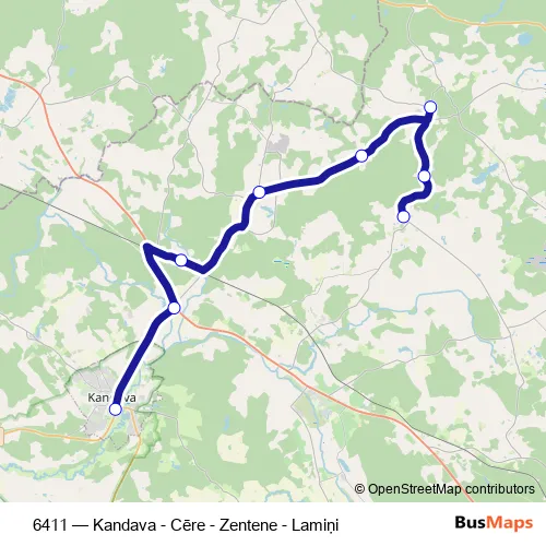 Click here to view the nearest 6411 - Kandava - Cēre - Zentene - Lamiņi bus stop.