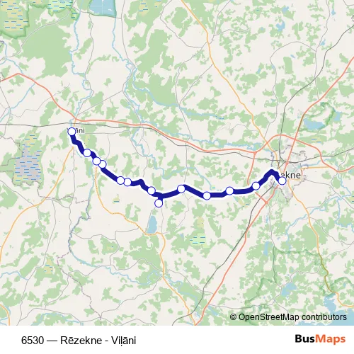 The first stop of the 6530 bus route is Viļānu Ao and the last stop is Rēzeknes Ao. 6530 (Rēzekne - Viļāni) is operational during ежедневно.