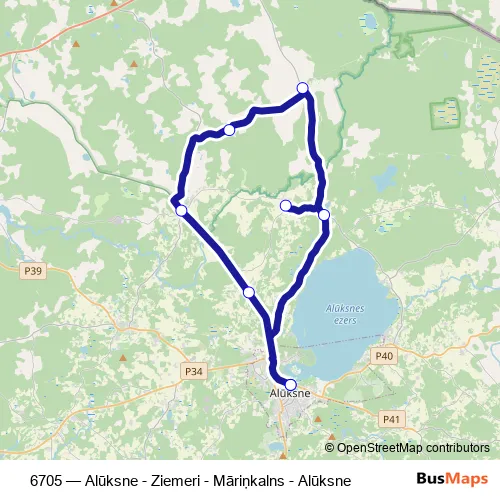 Bus 6705 - Alūksne - Ziemeri - Māriņkalns - Alūksne: Full Schedule in Aluksne