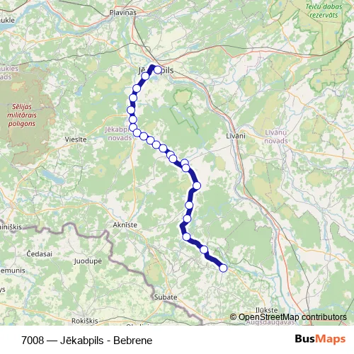 Click here to view the nearest 7008 - Jēkabpils - Bebrene bus stop.