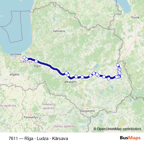 Click here to view the nearest 7611 - Rīga - Ludza - Kārsava bus stop.