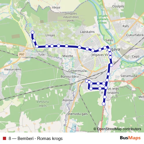 Bus 8 - Bemberi - Romas krogs in Jelgava: Stops & Timetable