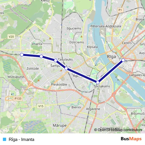 Additional information: Rīga - Imanta has 6 stops and the total trip duration for this route is approximately 17 minutes.