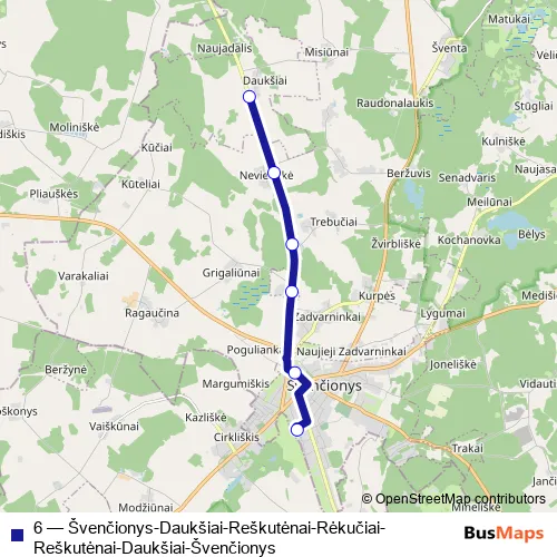 Click here to view the nearest 6 - Švenčionys-Daukšiai-Reškutėnai-Rėkučiai-Reškutėnai-Daukšiai-Švenčionys bus stop.