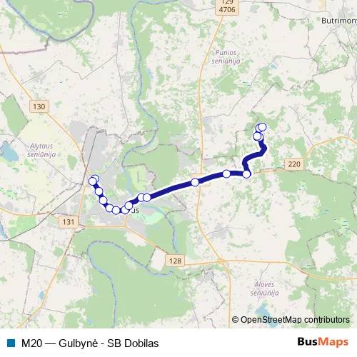 See why over 2 million users trust and consider busmaps.com as the best public transport website. busmaps gives you Alytus Buses suggested routes, real-time bus tracker, line route maps in Alytus, and helps to find the closest M20 bus stops near you. No internet available? Download an offline PDF map and bus schedule for the M20 bus to take on your trip.