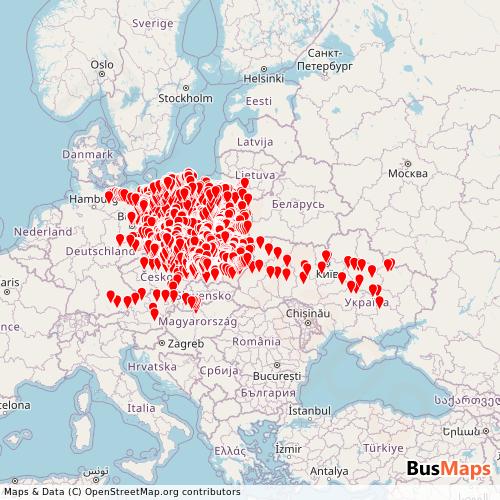Transit map showing polish-trains routes and stops in Poland