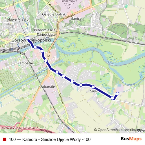 Bus 100 - Katedra - Siedlice Ujęcie Wody -100: Full Schedule in Gorzow Wielkopolski