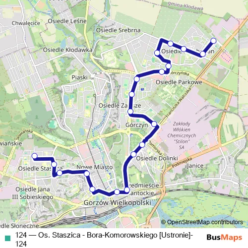 Bus 124 - Os. Staszica - Bora-Komorowskiego Ustronie-124 Schedule in Gorzow Wielkopolski