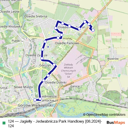 See why over 2 million users trust and consider busmaps.com as the best public transport website. busmaps gives you Gorzow Wielkopolski Buses suggested routes, real-time bus tracker, line route maps in Gorzow Wielkopolski, and helps to find the closest 124 bus stops near you. No internet available? Download an offline PDF map and bus schedule for the 124 bus to take on your trip.