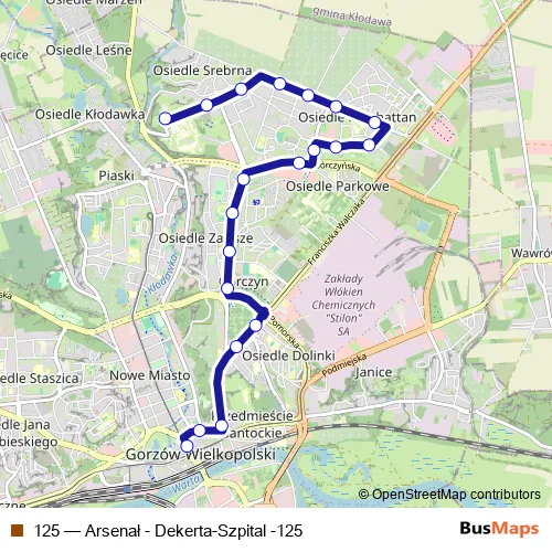 See why over 2 million users trust and consider busmaps.com as the best public transport website. busmaps gives you Gorzow Wielkopolski Buses suggested routes, real-time bus tracker, line route maps in Gorzow Wielkopolski, and helps to find the closest 125 bus stops near you. No internet available? Download an offline PDF map and bus schedule for the 125 bus to take on your trip.