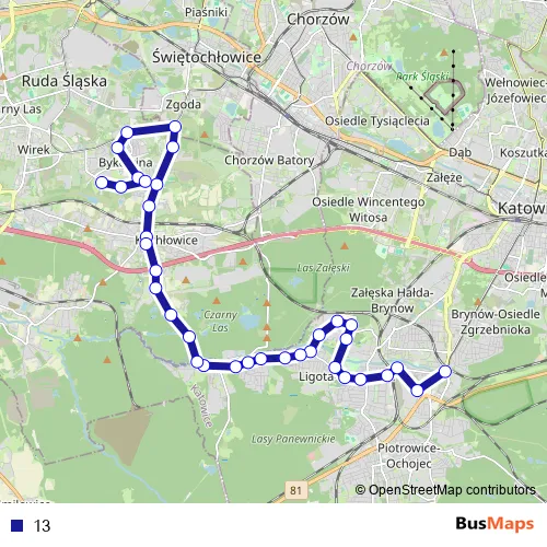 See why over 2 million users trust and consider busmaps.com as the best public transport website. busmaps gives you Katowice Buses suggested routes, real-time bus tracker, line route maps in Katowice, and helps to find the closest 13 bus stops near you. No internet available? Download an offline PDF map and bus schedule for the 13 bus to take on your trip.