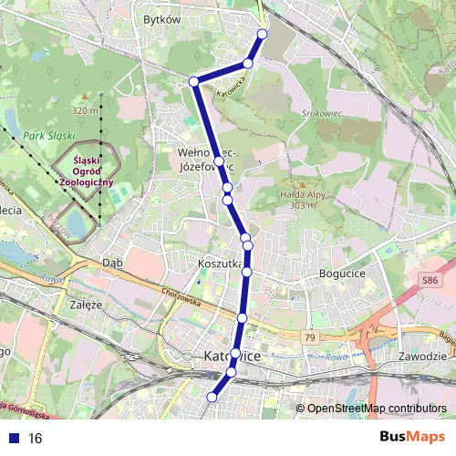 See why over 2 million users trust and consider busmaps.com as the best public transport website. busmaps gives you Katowice Trams suggested routes, real-time bus tracker, line route maps in Katowice, and helps to find the closest 16 tram stops near you. No internet available? Download an offline PDF map and bus schedule for the 16 tram to take on your trip.