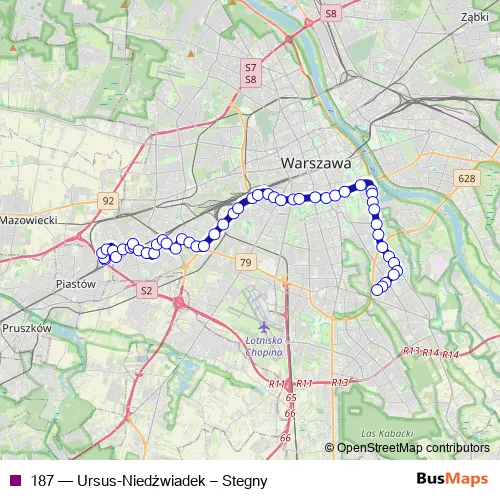 See why over 2 million users trust and consider busmaps.com as the best public transport website. busmaps gives you Warsaw Buses suggested routes, real-time bus tracker, line route maps in Warsaw, and helps to find the closest 187 bus stops near you. No internet available? Download an offline PDF map and bus schedule for the 187 bus to take on your trip.