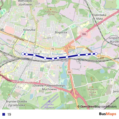 See why over 2 million users trust and consider busmaps.com as the best public transport website. busmaps gives you Katowice Trams suggested routes, real-time bus tracker, line route maps in Katowice, and helps to find the closest 19 tram stops near you. No internet available? Download an offline PDF map and bus schedule for the 19 tram to take on your trip.