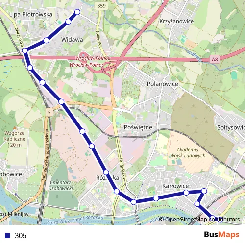 See why over 2 million users trust and consider busmaps.com as the best public transport website. busmaps gives you Wroclaw Buses suggested routes, real-time bus tracker, line route maps in Wroclaw, and helps to find the closest 305 bus stops near you. No internet available? Download an offline PDF map and bus schedule for the 305 bus to take on your trip.