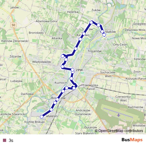See why over 2 million users trust and consider busmaps.com as the best public transport website. busmaps gives you Sochaczew Buses suggested routes, real-time bus tracker, line route maps in Sochaczew, and helps to find the closest 3s bus stops near you. No internet available? Download an offline PDF map and bus schedule for the 3s bus to take on your trip.