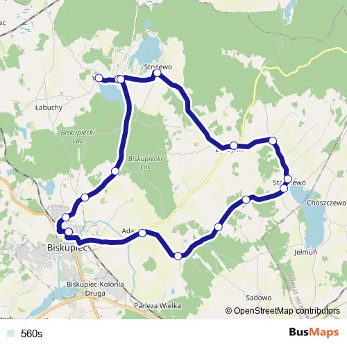See why over 2 million users trust and consider busmaps.com as the best public transport website. busmaps gives you Biskupiec Buses suggested routes, real-time bus tracker, line route maps in Biskupiec, and helps to find the closest 560s bus stops near you. No internet available? Download an offline PDF map and bus schedule for the 560s bus to take on your trip.