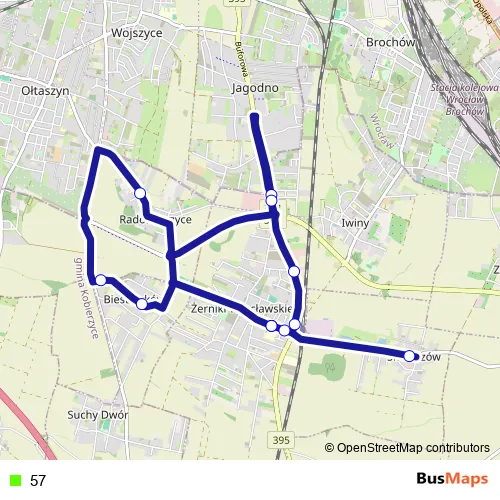 See why over 2 million users trust and consider busmaps.com as the best public transport website. busmaps gives you Wroclaw Buses suggested routes, real-time bus tracker, line route maps in Wroclaw, and helps to find the closest 57 bus stops near you. No internet available? Download an offline PDF map and bus schedule for the 57 bus to take on your trip.