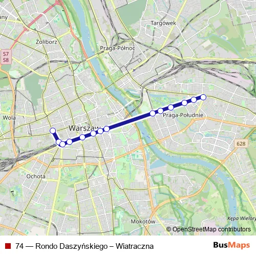 See why over 2 million users trust and consider busmaps.com as the best public transport website. busmaps gives you Warsaw Trams suggested routes, real-time bus tracker, line route maps in Warsaw, and helps to find the closest 74 tram stops near you. No internet available? Download an offline PDF map and bus schedule for the 74 tram to take on your trip.