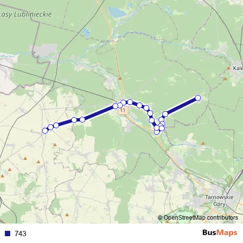 The first stop of the 743 bus route is Mikołeska and the last stop is Wielowieś Centrum Przesiadkowe. 743 is operational during по выходным.