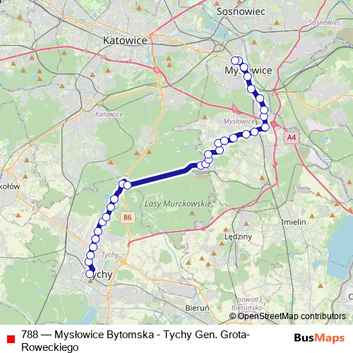 See why over 2 million users trust and consider busmaps.com as the best public transport website. busmaps gives you Katowice Buses suggested routes, real-time bus tracker, line route maps in Katowice, and helps to find the closest 788 bus stops near you. No internet available? Download an offline PDF map and bus schedule for the 788 bus to take on your trip.
