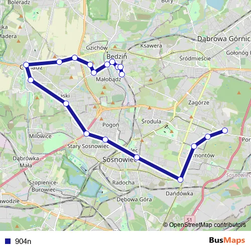 See why over 2 million users trust and consider busmaps.com as the best public transport website. busmaps gives you Bedzin Buses suggested routes, real-time bus tracker, line route maps in Bedzin, and helps to find the closest 904n bus stops near you. No internet available? Download an offline PDF map and bus schedule for the 904n bus to take on your trip.