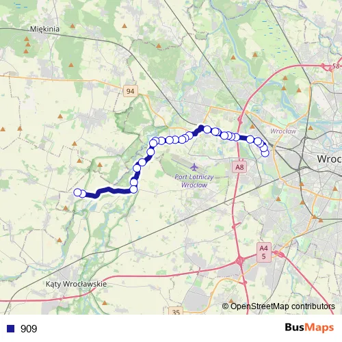 See why over 2 million users trust and consider busmaps.com as the best public transport website. busmaps gives you Wroclaw Buses suggested routes, real-time bus tracker, line route maps in Wroclaw, and helps to find the closest 909 bus stops near you. No internet available? Download an offline PDF map and bus schedule for the 909 bus to take on your trip.