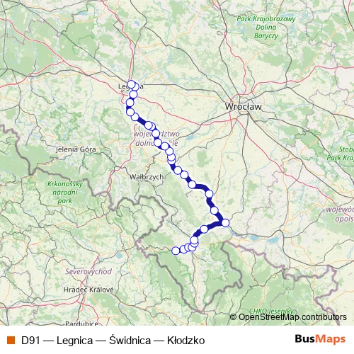 Click here to view the nearest D91 - Legnica — Świdnica — Kłodzko rail stop.