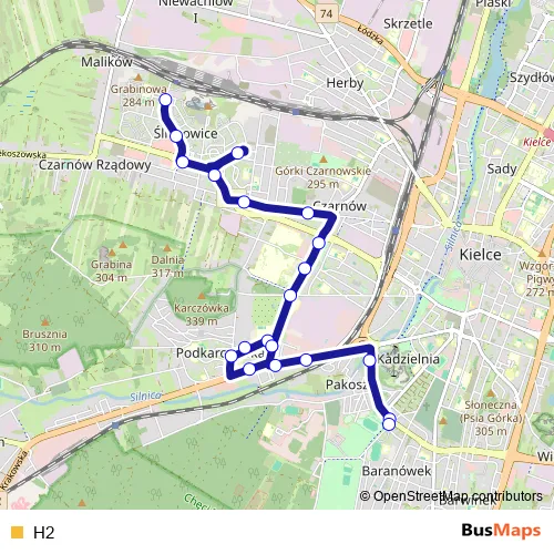 See why over 2 million users trust and consider busmaps.com as the best public transport website. busmaps gives you Kielce Buses suggested routes, real-time bus tracker, line route maps in Kielce, and helps to find the closest H2 bus stops near you. No internet available? Download an offline PDF map and bus schedule for the H2 bus to take on your trip.