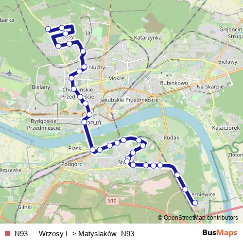 See why over 2 million users trust and consider busmaps.com as the best public transport website. busmaps gives you Wielka Nieszawka Buses suggested routes, real-time bus tracker, line route maps in Wielka Nieszawka, and helps to find the closest N93 bus stops near you. No internet available? Download an offline PDF map and bus schedule for the N93 bus to take on your trip.