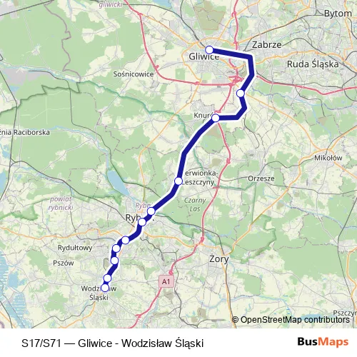Click here to view the nearest S17/S71 - Gliwice - Wodzisław Śląski rail stop.
