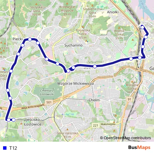 See why over 2 million users trust and consider busmaps.com as the best public transport website. busmaps gives you Gdansk Buses suggested routes, real-time bus tracker, line route maps in Gdansk, and helps to find the closest T12 bus stops near you. No internet available? Download an offline PDF map and bus schedule for the T12 bus to take on your trip.